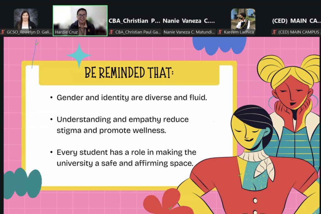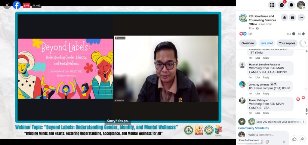 Guided by the theme โ๐๐ณ๐ช๐ฅ๐จ๐ช๐ฏ๐จ ๐๐ช๐ฏ๐ฅ๐ด ๐ข๐ฏ๐ฅ ๐๐ฆ๐ข๐ณ๐ต๐ด: ๐๐ฐ๐ด๐ต๐ฆ๐ณ๐ช๐ฏ๐จ ๐๐ฏ๐ฅ๐ฆ๐ณ๐ด๐ต๐ข๐ฏ๐ฅ๐ช๐ฏ๐จ, ๐๐ค๐ค๐ฆ๐ฑ๐ต๐ข๐ฏ๐ค๐ฆ, ๐ข๐ฏ๐ฅ ๐๐ฆ๐ฏ๐ต๐ข๐ญ ๐๐ฆ๐ญ๐ญ๐ฏ๐ฆ๐ด๐ด ๐ง๐ฐ๐ณ ๐๐ญ๐ญโ, the Romblon State University-Guidance and Counseling Services Office (GCSO) in collaboration with RSU Office of Media & Public Affairs successfully spearheaded a university-wide webinar titled โ๐๐ฒ๐๐ผ๐ป๐ฑ ๐๐ฎ๐ฏ๐ฒ๐น๐: ๐จ๐ป๐ฑ๐ฒ๐ฟ๐๐๐ฎ๐ป๐ฑ๐ถ๐ป๐ด ๐๐ฒ๐ป๐ฑ๐ฒ๐ฟ, ๐๐ฑ๐ฒ๐ป๐๐ถ๐๐, ๐ฎ๐ป๐ฑ ๐ ๐ฒ๐ป๐๐ฎ๐น ๐ช๐ฒ๐น๐น๐ป๐ฒ๐๐โ.